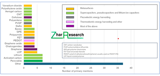 CAPTION: The most successful materials in recent research relevant to battery-free and self-powered 6G infrastructure and client devices. Source: Zhar Research report, "6G Communications Winning Materials, Hardware, Systems: Markets, Technology Opportunities 2026-2046".