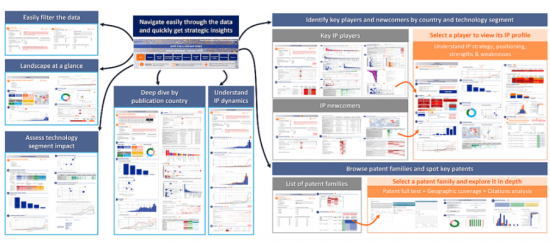 - One-year access to an interactive dashboard to dynamically explore the patent landscape and instantly drill down from a high-level view to specific players, technologies, and patents.