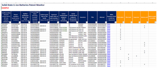 The Solid-State Li-ion Batteries patent monitoring service enables you to stay continuously up to date with the evolving patent landscape by providing: