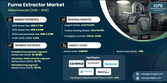 The Global Fume Extractor Market was valued at USD 2.7 billion in 2025 and is estimated to grow at a CAGR of 5.4% to reach USD 4.5 billion by 2035.