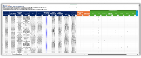 Excel database containing the 15.400+ patents analyzed in the report, including patent segmentations and hyperlinks to an updated online database.